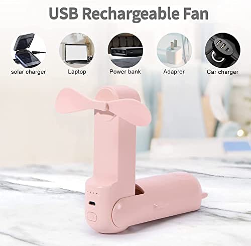 【270 Degree foldable&portable fan】-small fan with foldable design, flexible to fold in 270 degree, either you can use it as a handheld fan or a desk fan. Besides, soft fan blades can be folded and hidden, saving storage space when not in use. The lightweight design allows you to easily slip it into your pocket or handbag, very easy to carry and store.
