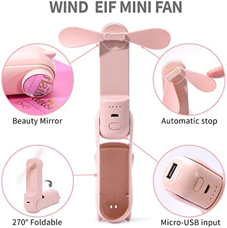 【Summer Necessity】 This small fan is an ideal and premium gifts for girls, friends, family especially when the hot summer is comming. The handheld mini fan is suitable for indoor and outdoor, take it and use it anywhere anytime at home, office, camping, mountain climbing, traveling, etc.
